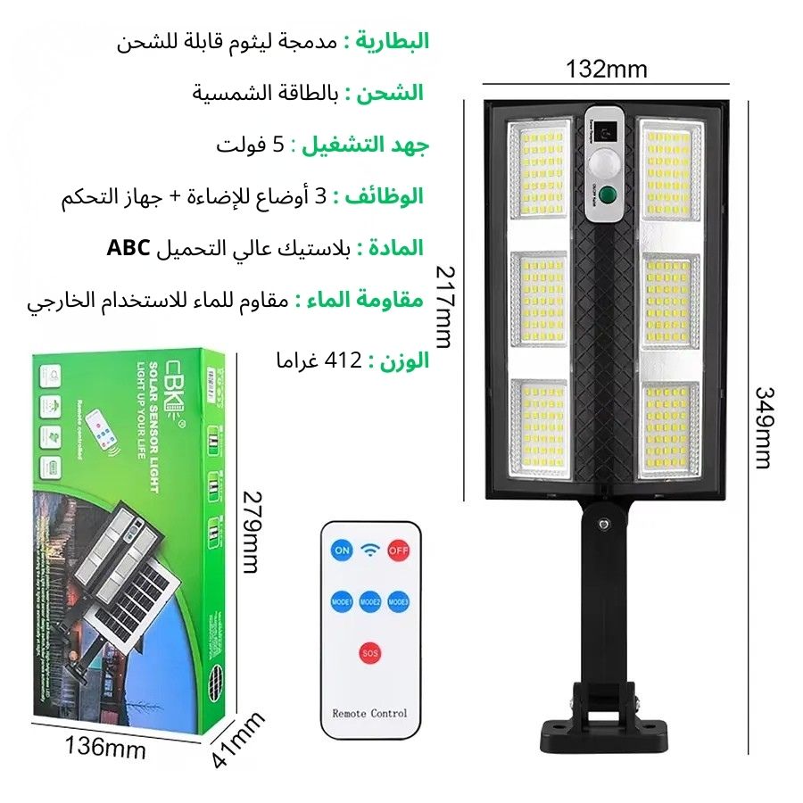 مصباح جداري يعمل بالطاقة الشمسية مع جهاز تحكم عن بعد إنارة قوية وموفرة للطاقة